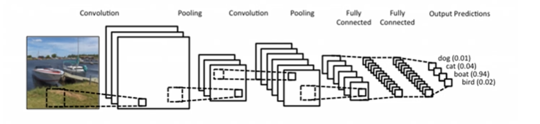CNN은 총 3가지 레이어로 구성되있으며, 앞쪽 합성곱 계층(Convolution layer)과 풀링 계층(Pooling layer)은 특징을 뽑아내는 역할을 수행하고 뒤쪽 완전히 연결된 계층(fully-connected layer)은 분류 연산을 수행한다.