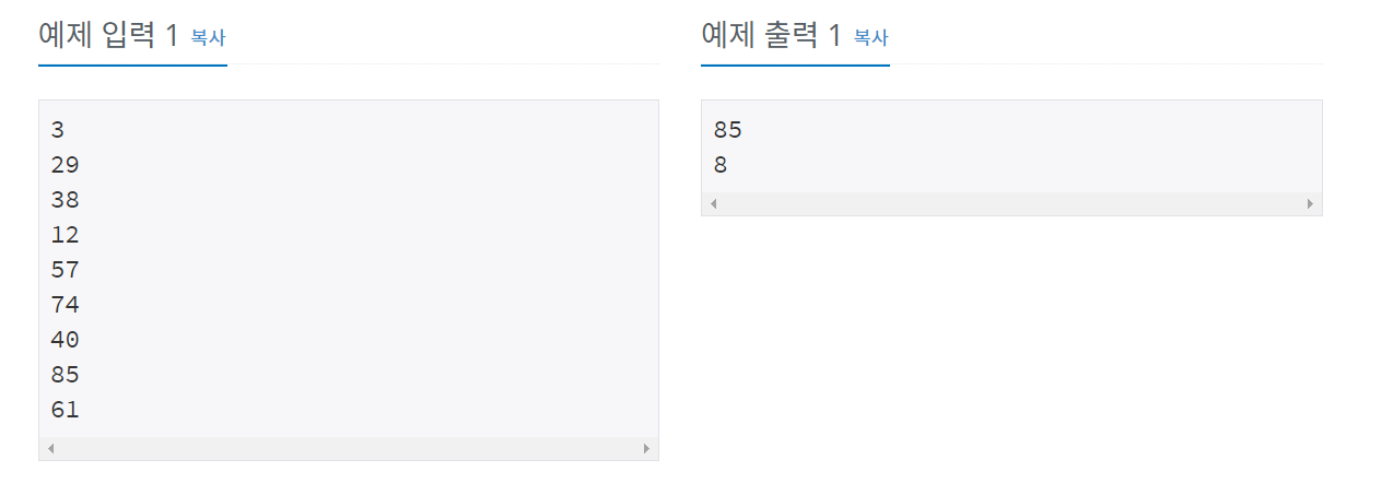 이 주어지면, 이들 중 최댓값은 85이고, 이 값은 8번째 수이다.