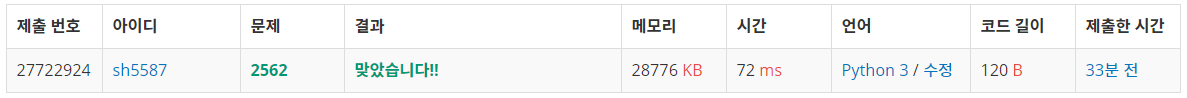 | 백준 1152번 _단어의 개수(Python/파이썬) (0) | 2021.03.27 |