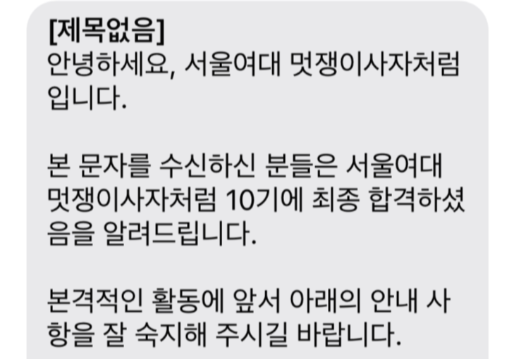 멋쟁이 사자처럼 10기 최종 합격 문자를 받았어요.