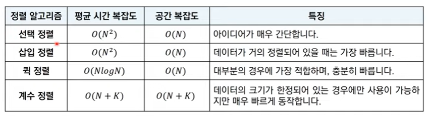 대부분의 프로그래밍 언어에서 지원하는 표준 정렬 라이브러리는 최악의 경우에도 O(NlogN)을 보장하도록 설계되어 있음! -> 정렬 함수를 구하라는 조건이 없다면, 표준 정렬 라이브러리 호출해서 사용하는 것을 추천