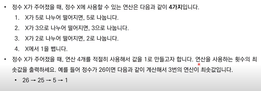 - 다른 알고리즘 풀이 방법이 떠오르지 않는다면 다이나믹 프로그래밍 고려