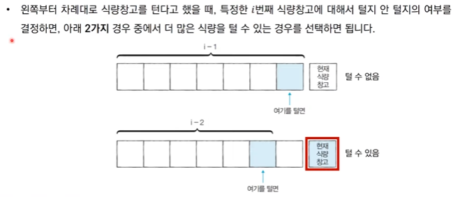 2 ) ai = i 번째 식량창고까지의 최적의 해(얻을 수 있는 식량의 최댓값)
