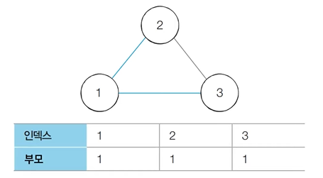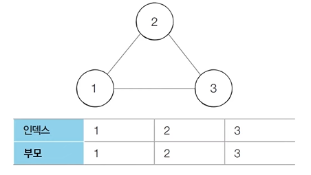 [ 초기단계 ] 노드의 개수 크기의 부모 테이블 초기화